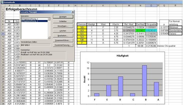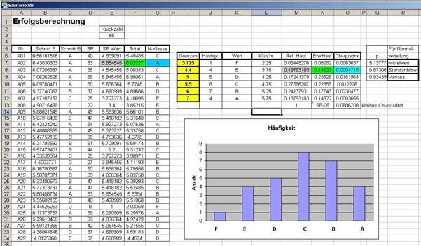 festgelegt. Die dazu gehörigen Häufigkeiten finden wir in Kolonne J. Ihre