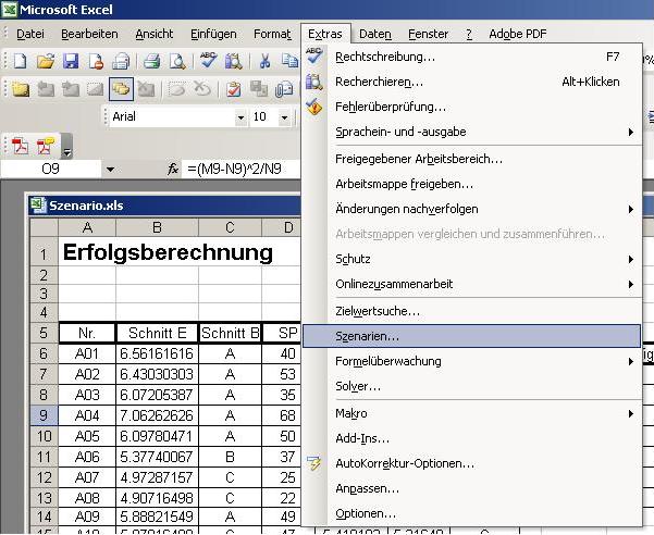 in EXCEL unter Beobachtung des Systems ausführt und dann abspeichert. Hier