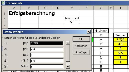„=WENN(F7>$I$11;"A";WENN(F7>$I$10;"B";WENN(F7>$I$9;"C";