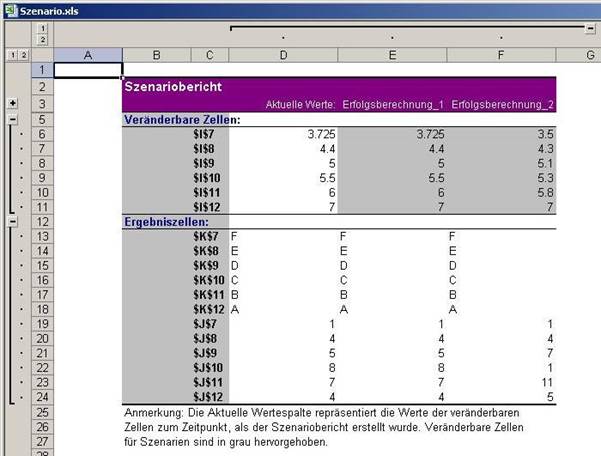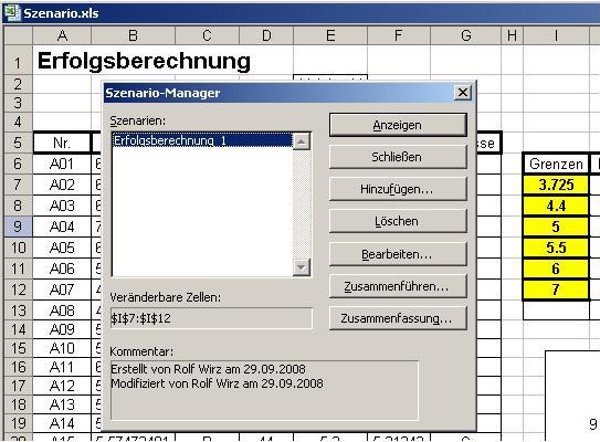werden was passiert, wenn man die Werte in der Kolonne I infolge einschlägiger