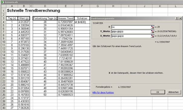 4.2. EXCEL-Werkzeuge zur Trendermittlung