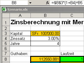 Wir klicken in die Zelle B3