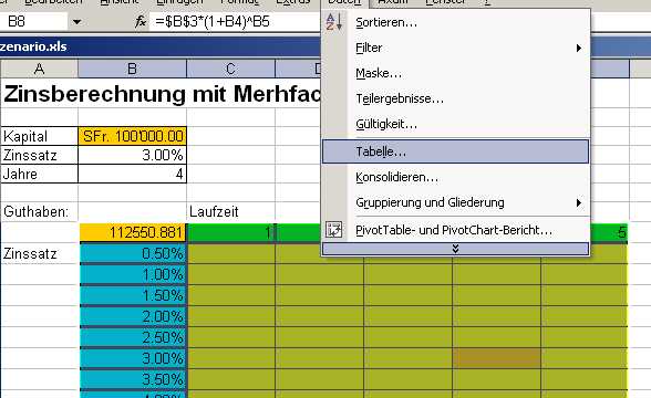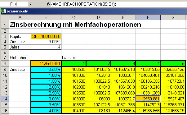 3. Mehrfachoperationen oder Tabellenerzeugung