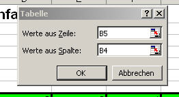 oben gezeigte Tabelle in ein anderes Arbeitsblatt zu kopieren und dort dann die