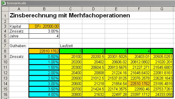 nach der eben beschriebenen Berechnung die Zellen G4:G26 abermals. Darauf