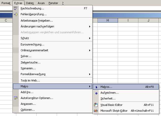 Bekanntschaft zu schließen, wählen wir „Extras è Makro è Makros…“. Darauf erscheint ein Fenster mit
