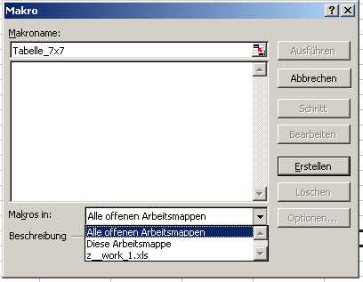 geben wir hier den Namen „Tabelle_7x7“ ein. Das Makro soll für alle offenen