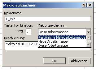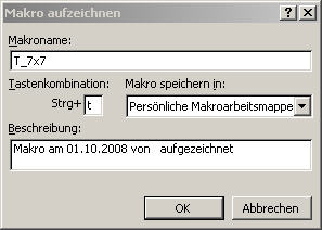 mit Namen „Makro aufzeichnen“ öffnet. Hier tragen wir den Namen T_7x7 ein,
