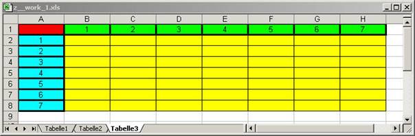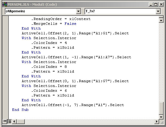 Namen Tabelle_7x7 angelegt, in der noch kein Programmcode vorhanden ist. Hier